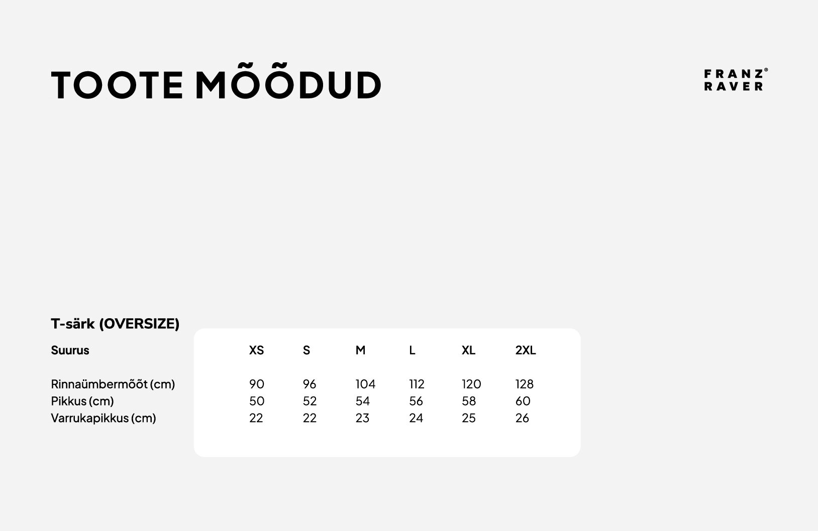 XS, S, M, L, XL, XXL